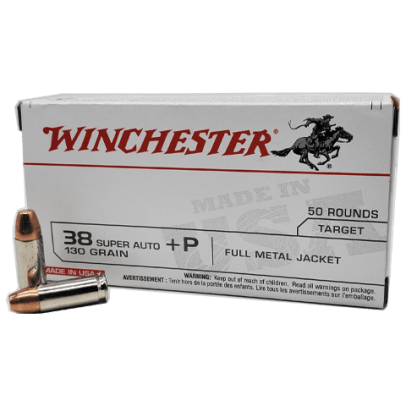 38 Super – Winchester 130 Grain +P Full Metal Jacket Brass Case – 50 Rounds