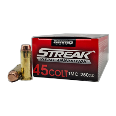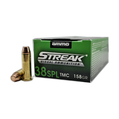 The full metal jacket projectile is constructed from a lead core with an outer copper jacket.